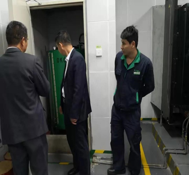 常安物業(yè)負責人分享企業(yè)綠色物業(yè)管理理念 參觀學習電機房 參觀學習雨水集蓄機房