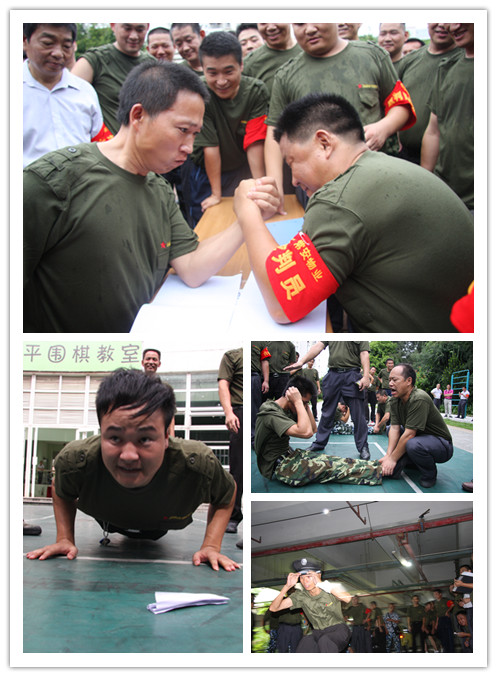 比賽分為六項。1、俯臥撐。2、仰臥起坐。3、蛙跳接力。4、扳手腕。5、隊列比賽。6、拔河比賽。同志們熱情高漲,軍人堅強、拼搏的氣息充滿了整個比賽場地。每個人的心中都流露出來一種不服輸?shù)臍鈩荨1M管我們已經(jīng)退伍多年,盡管我們的隊伍是臨時組建。站在了一起,站在了同一個連隊,喊著我們共同的口號,我們此刻就是軍人。就是一個連隊的兄弟。這就是軍人,就是偉大的中國人民解放軍。